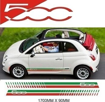 Nový polep na auto-Fiat 500, 500C s talianskou trikolorou....Sada pozostáva z oboch strán, na pravú a ľavú stanu auta.