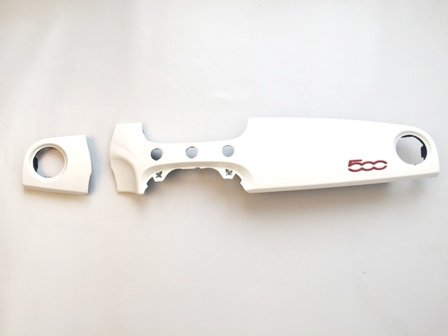 Kompletná sada interiérových líšt v bielej matnej farbe s červeným logom 500.