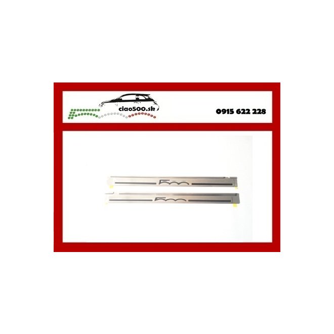 Hlinikové, ozdobné prahové lišty s protišmikovým logom 500. Lišty sa nalepujú na nástupne plastové diely auta. Sada pozostáva za pravej aj ľavej strany