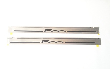 Hlinikové, ozdobné prahové lišty s protišmikovým logom 500. Lišty sa nalepujú na nástupne plastové diely auta. Sada pozostáva za pravej aj ľavej strany