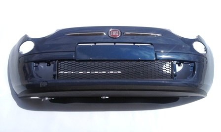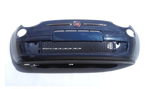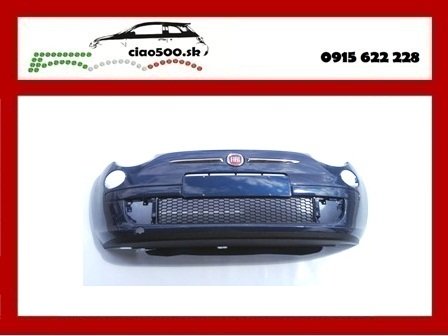 Predný nárazník v modrej farbe so znakom, malými chrómovými lištami a stredovou mriežkou.