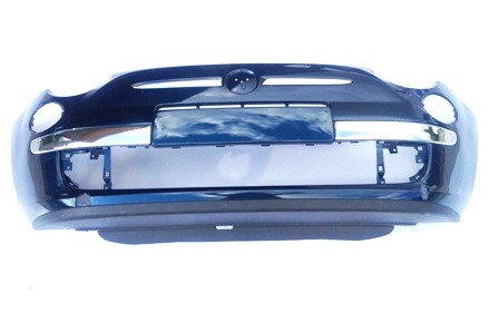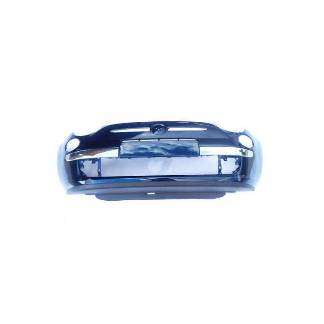 Predný nárazník v modrej farbe s malými chrómovými lištami a bočnými veľkými chrómovými lištami.