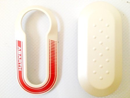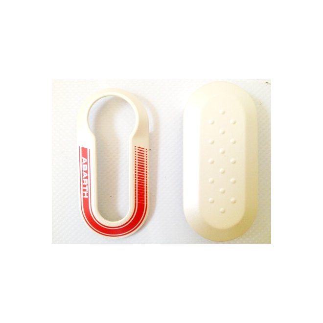 Biela sada kľúča s nápisom ABARTH , ktorá pozostáva z predného a zadného krytu. Sada je veľmi ľahko montovateľná. Nahrádza sa Váš pôvodný kryt.