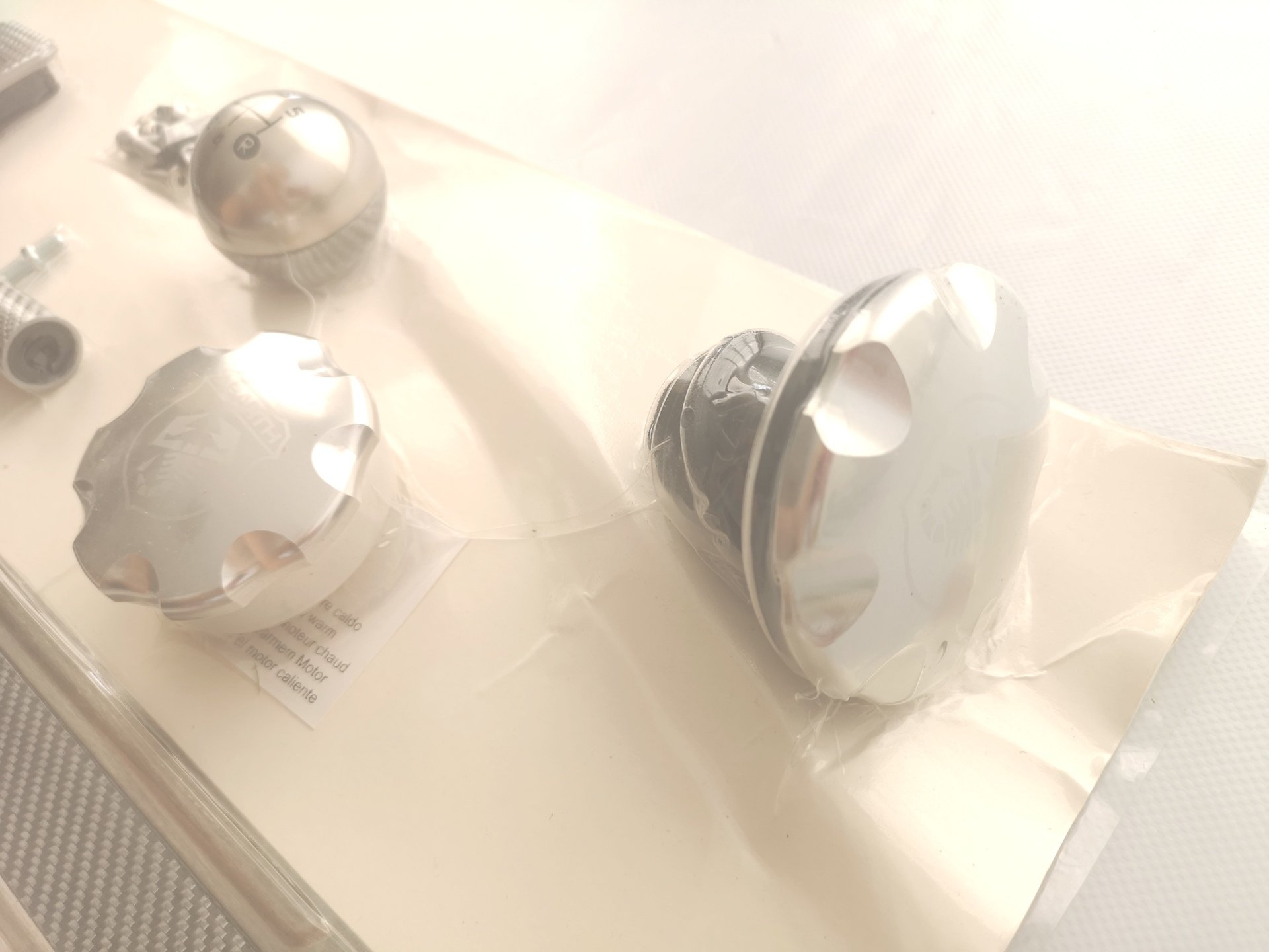 Nová sada Turismo Sport kit obsahuje, sportové pedále, prahové lišty Turismo, radiacú páku , ozdobné olejove a palivové veko. Dekor strieborný carbon.
