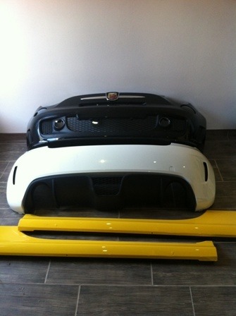 Komplet sa skladá z predného nárazníka (s lištami, mriežkami a znakom), zadného nárazníka a prahov