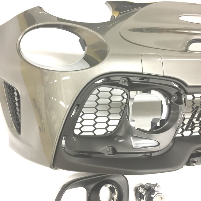 Predný nárazník, lak v perfektnom stave- bez škrabancov. Kód farby 695 šedá. V cene nárazníka sú bočné mriežky, krytky okolo hmloviek, hmlovky, predný Abarth znak aj s lištou.
