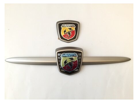 Nový predný znak Abarth s lištou a zadný znak Abarth v striebornom matnom prevedení