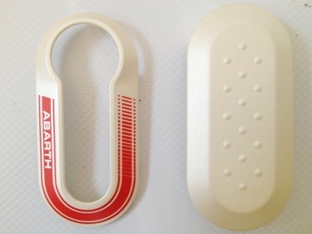 Biela sada kľúča s nápisom ABARTH , ktorá pozostáva z predného a zadného krytu. Sada je veľmi ľahko montovateľná. Nahrádza sa Váš pôvodný kryt.