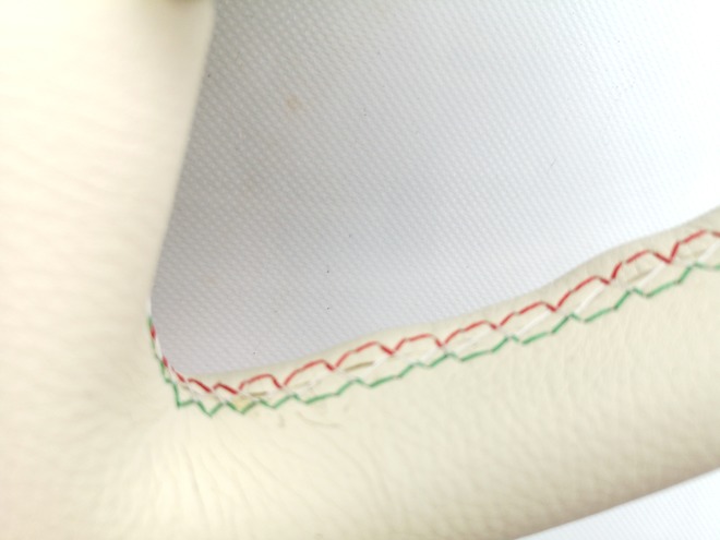 Nový, prečalúnený volant v krémovej kožy s prešitím trikolora. Cena za predpokladu odovzdania starého volantu.