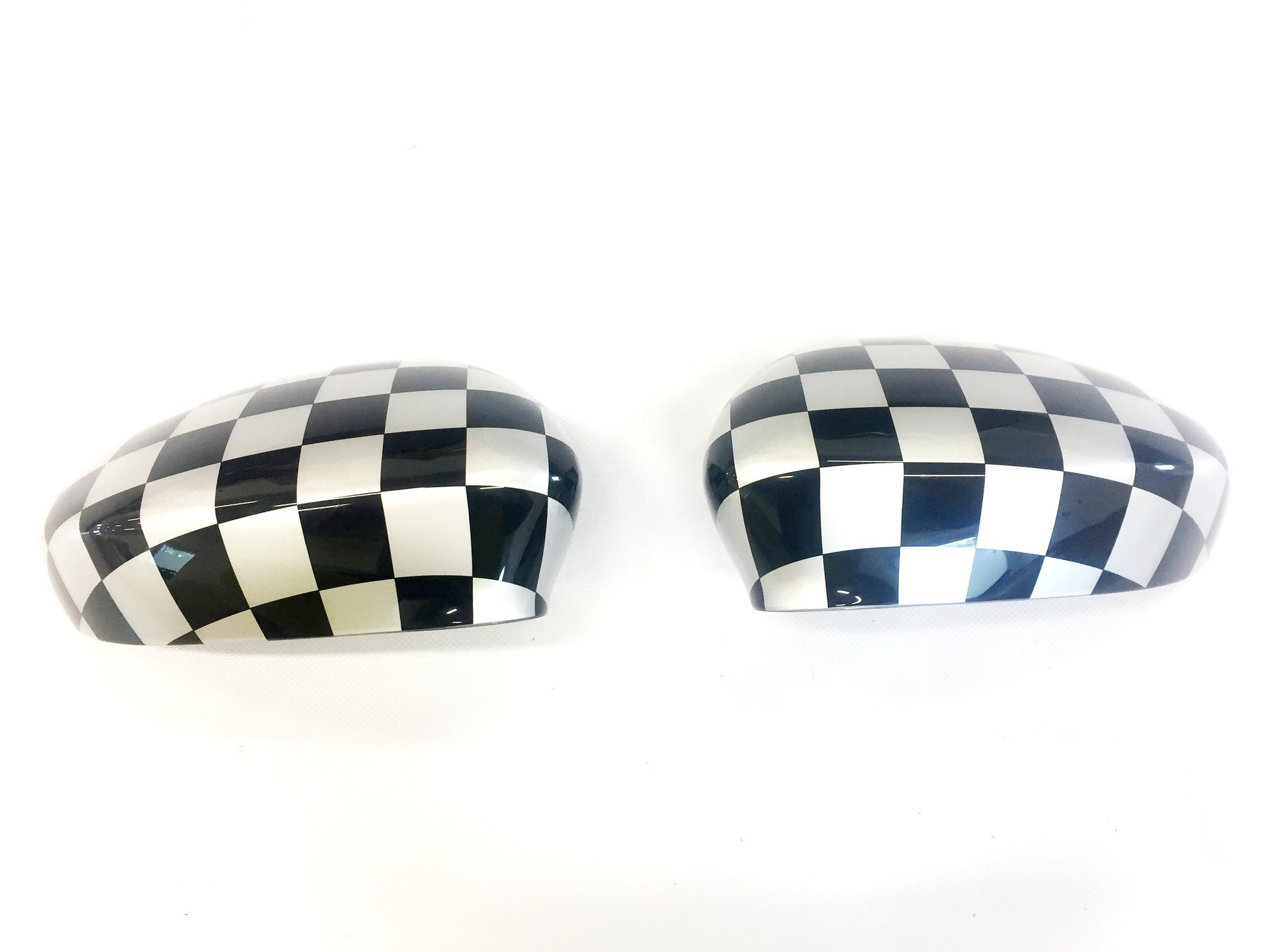 Fiat Punto krytky spatného zrkadla- šachovnica. Krytky sú podlepené 3M páskou pre zalepenie na pôvodné krytky.