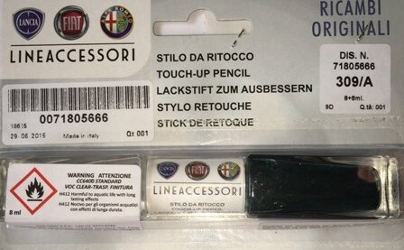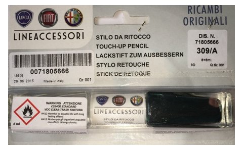 Nová opravná sadla laku pozostáva z dvoch častí, laku s kódovým označením 309/A a priesvitným lakom. Sada obsahuje 8+8ml.