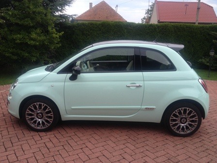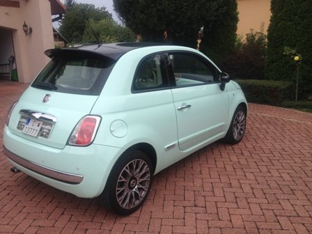 Fiat 500 z edície Cult 1.4 Sport (74Kw) v krásnej jemno zelenej farbe s čiernou strechou a predlžením strechy a originálnymi Gucci 16´´kolesami. Rok výroby 2010, dovoz z Francúzska po prvom majiteľovi, najazdených 20200km. Chrom packet na prednom a zadnom nárazníku, klimatizácia, el.okná, hmlovky,CD/MP3 prehrávač. Malé auto s veľkým srdcom